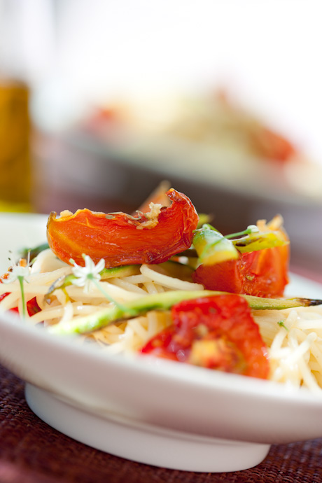 Las verduras que acompañan esta pasta, son preparadas al horno y las podéis utilizar en ensaladas, tostas, pizzas o acompañamiento de carnes o pescados, si lo deseáis podéis hacerlas con antelación y reservar en frío.