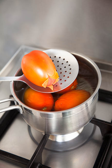Blanquear para pelar también se llama escaldar. Los tomates y algunas frutas como melocotones, uvas, ciruelas y almendras se escaldan para eliminar sus pieles. A los tomates y uvas se les hace una incisión en forma de x en el extremo inferior. Se introducen en agua hirviendo un minuto, se sacan y en el caso […]