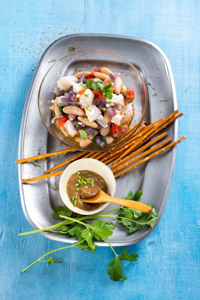 Alubias o judias blancas o fabes, cualquiera de ellas está riquísima en ensalada y con bacalao y pimientos se convierte en un plato único para tomar en primavera y verano.