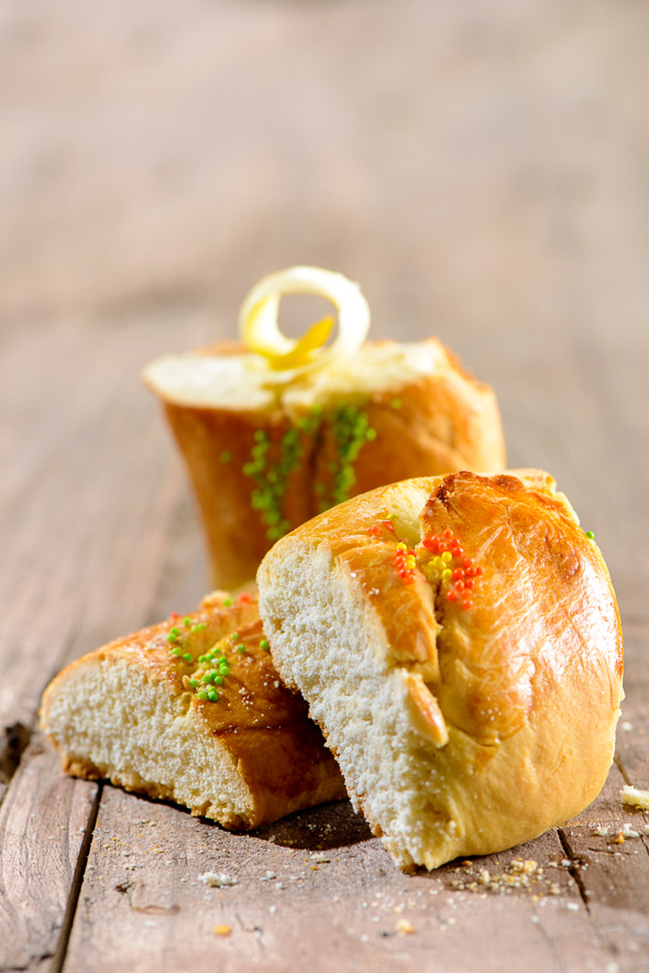 4- Pintar con huevo batido y espolvorear con confites de colores, hacer en el horno precalentado a 200° durante 20 minutos, sacar del horno y reserva sobre rejilla metálica tapada con un paño hasta que enfríe. Servir con mantequilla y mermelada.
