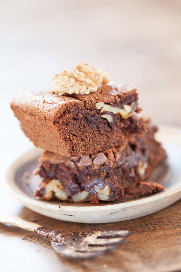 El Brownie es un bizcocho de origen Norteamericano muy fácil de hacer, resulta un dulce denso y sabroso que se debe tomar caliente o templado para que esté jugoso. Esta tarta o bizcocho se sirve sin desmoldar y se utilizan normalmente moldes rectangulares, para ésta utilicé uno que medía 28 x 18 cm.