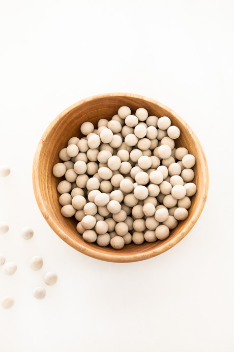 Estas pequeñas canicas de cerámica hacen que las masas o pastas, quebrada, brisa, hojaldrada, etc. no suban durante la cocción en horno. Se ponen encima de un papel de hornear como podéis ver en la técnica hornear en blanco. Pueden sustituirse y hacen la misma función, garbanzos, judías secas y arroz.