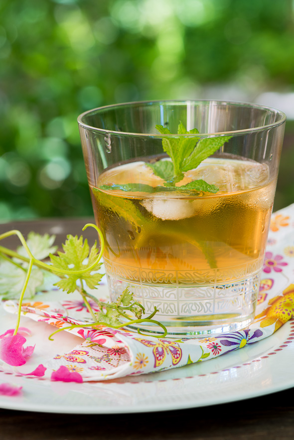 2- Cuando lo vayais a servir, añadir los hielos y acompañar con unas hojas de hierbabuena.