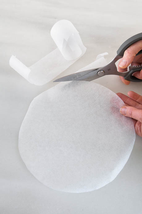 Otra manera es forrar un molde utilizamos principalmente papel encerado, se llama también papel de hornear. En el papel de hornear se dibuja y se corta la silueta de la base del molde y una tira para las paredes. En la tira de la pared se hacen unos cortes a lo largo en uno de sus lados