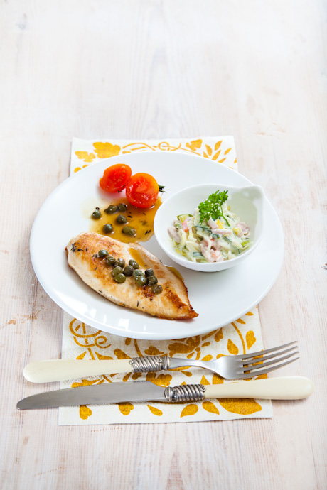 Pechuga plancha con salsa de alcaparras
