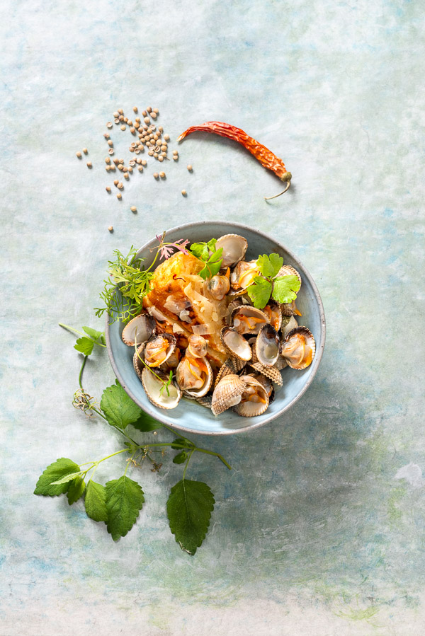 Tortilla en salsa de berberechos