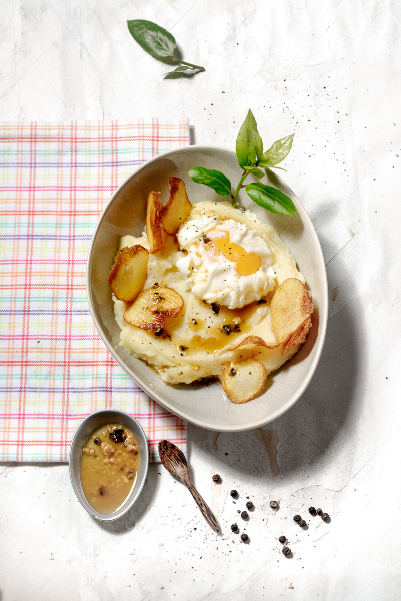 patatas con huevo trufado