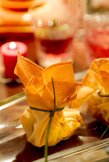 4- Cerrar en forma de paquete y atar con un cordel o la parte verde del puerro. Hornear hasta que la pasta comience a dorarse. Servir nada más salir del horno.