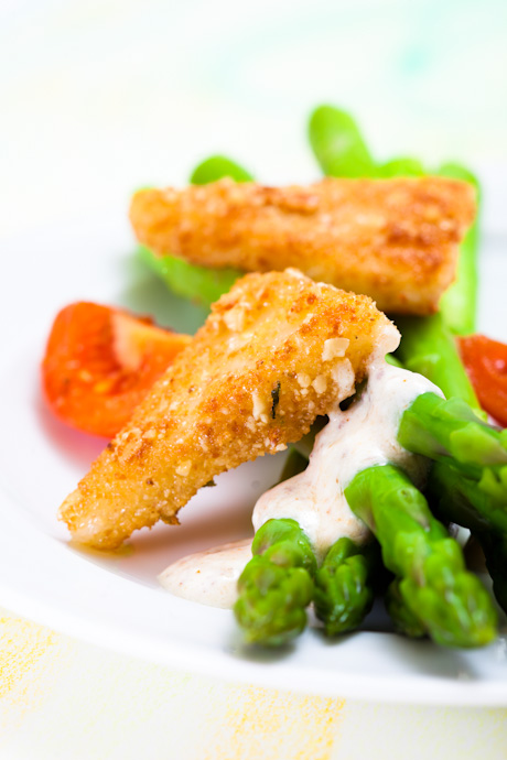 Espárragos verdes con queso frito