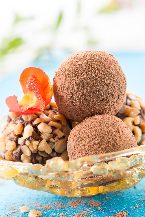 Estas trufas son tan fáciles de hacer y con tan pocos ingredientes que no tenéis disculpa si no os ponéis a ello. Para perfumarlas podéis poner en lugar de cardamomo, vainilla, menta o pimienta y sorprender a vuestros invitados sirviéndolas heladas acompañadas de un gin tonic.