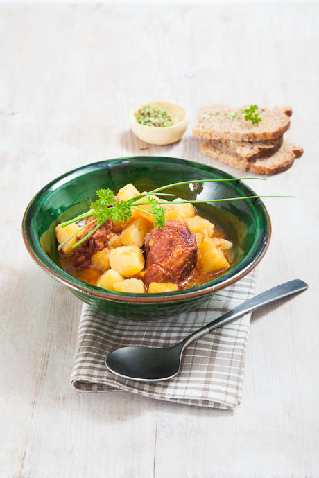 Este modo de preparar las patatas es típico de Salamanca (España) es un plato que se toma en otoño e invierno, el pimentón que se utiliza es el de La Vera, dulce o picante, el mismo con el que se elaboran los adobos de la matanza del cerdo en Salamanca.