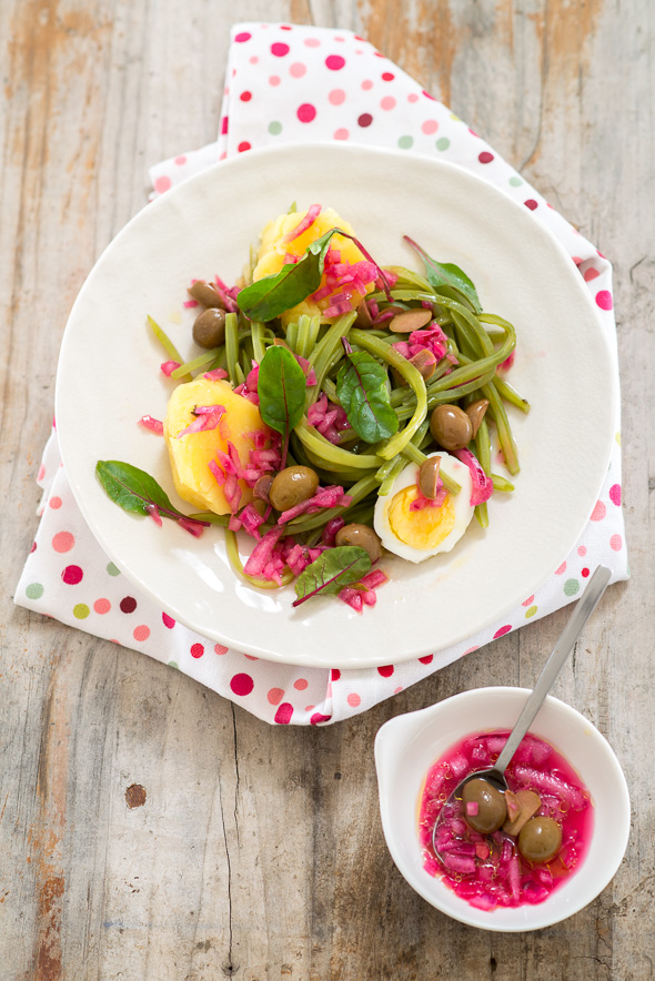 Este plato es muy sencillo, es importante que las judías verdes sean muy frescas para poder cortar en juliana con facilidad.